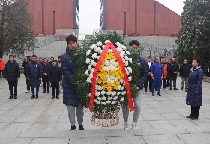 当日下午,俱乐部一行人来到了孟良崮战役纪念馆开展红色教育活动,缅怀革命先烈,感悟沂蒙精神的深厚内涵。俱乐部代表为革命烈士送上花篮,并向烈士们三鞠躬。